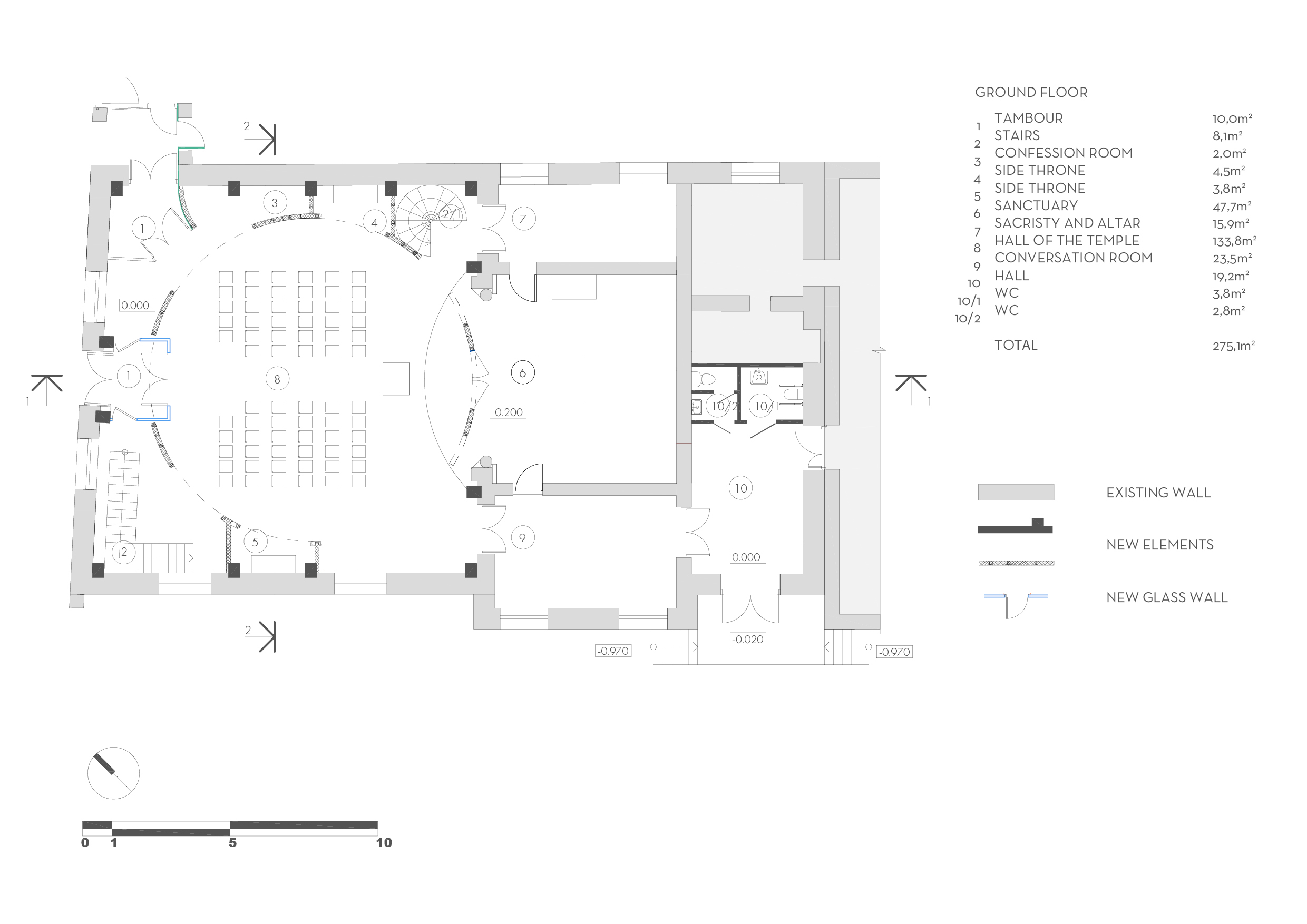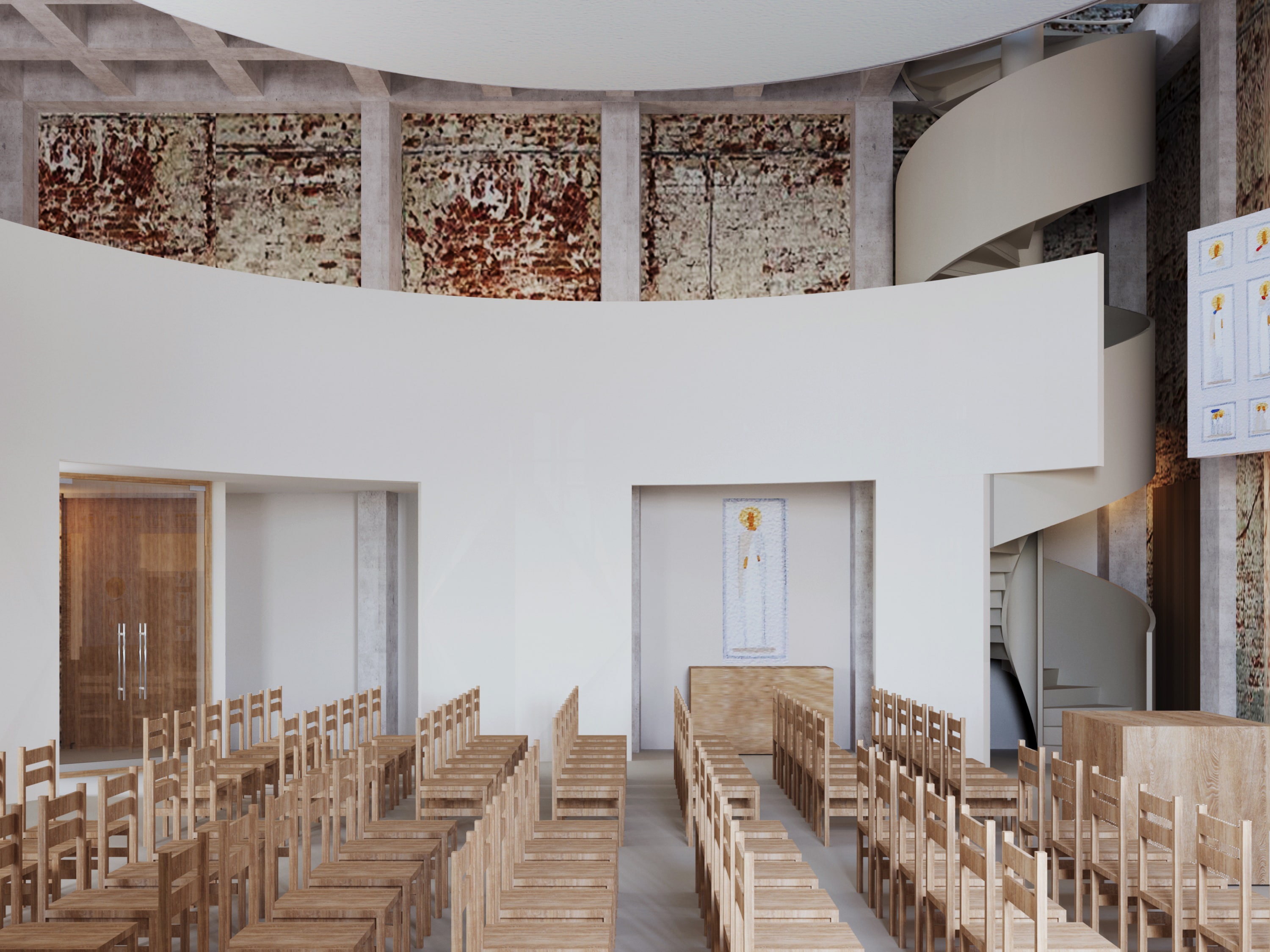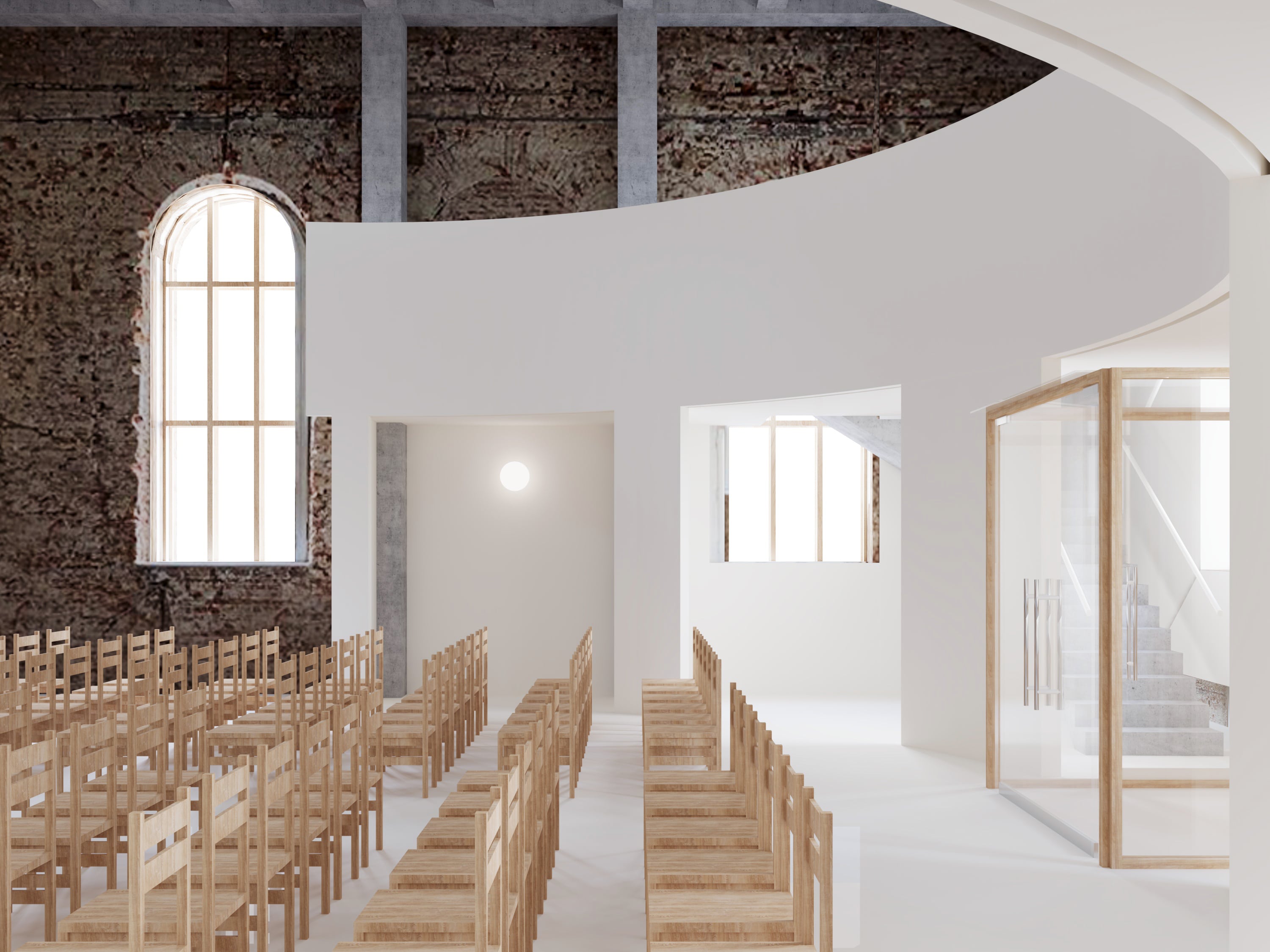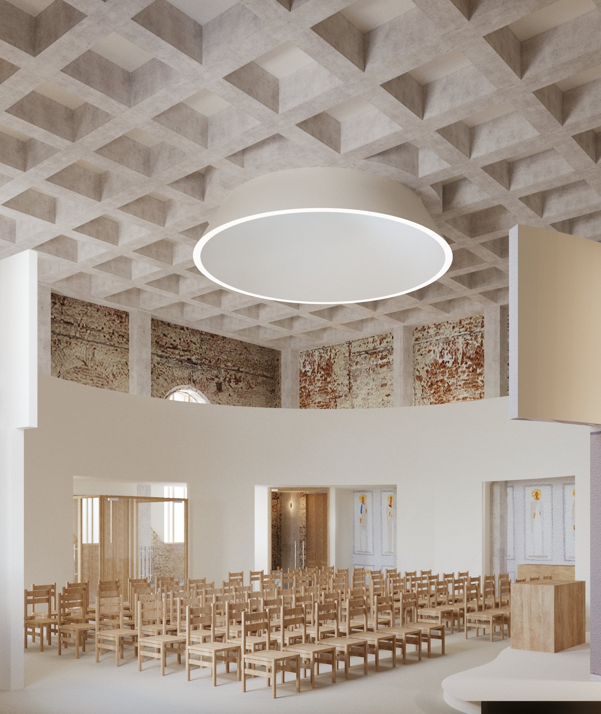 After reconstruction, the hall will be used by the Orphan Care Center for liturgies, concerts, children’s performances, and lectures. The building will remain open to all local residents, offering much-needed public space in the area. Several rooms will serve as classrooms for preschool children, while the existing playground and football field on the site will continue to operate.